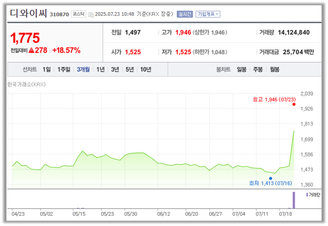 디와이씨 주가 정보