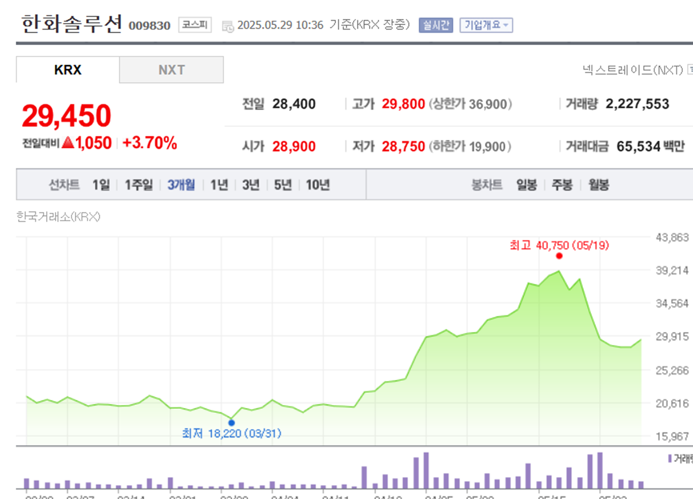 한화솔루션 주가 정보