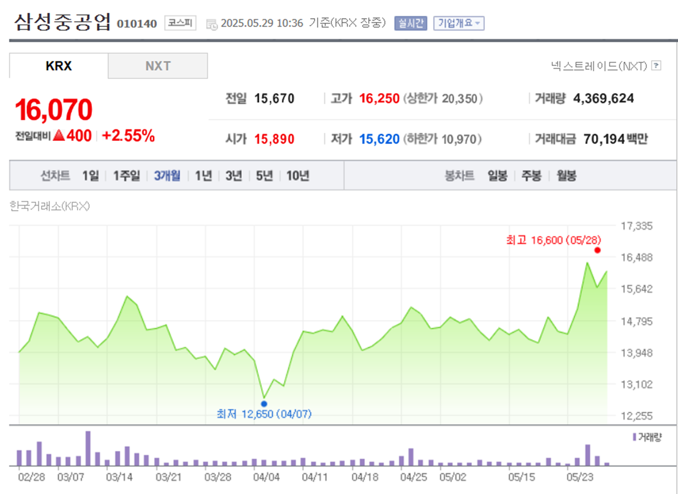삼성중공업 주가 정보