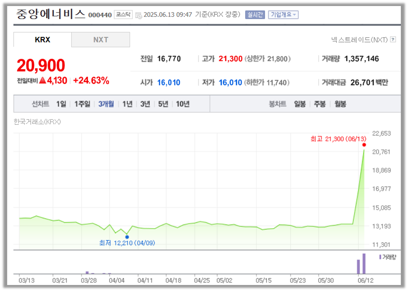 중앙에너비스 주가 정보