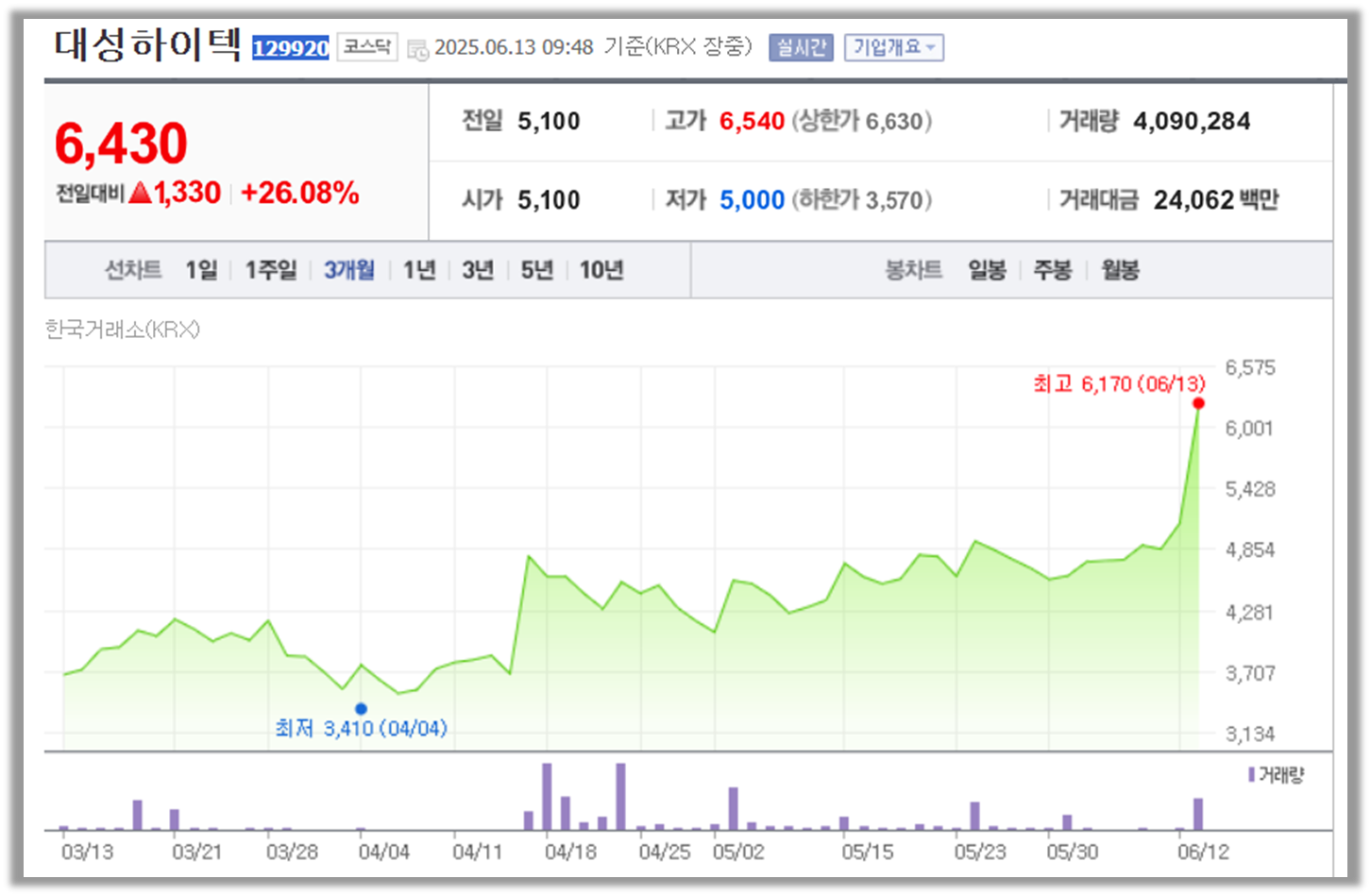 대성하이텍 주가 정보