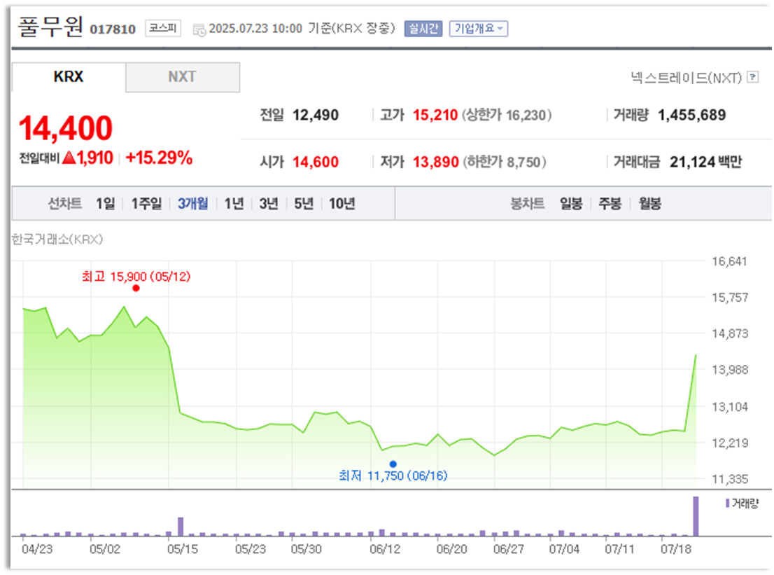 풀무원 주가 정보