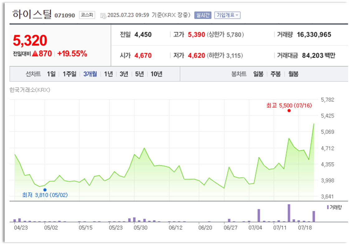 하이스틸 주가 정보